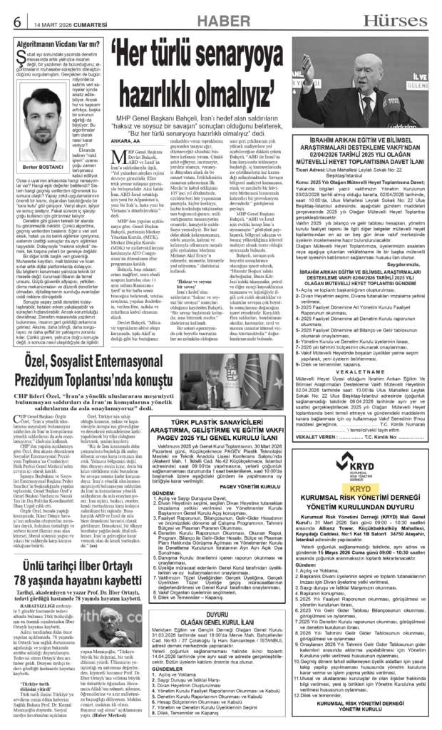 KRYD 2026 Yılı Mali Genel Kurul Gazete İlanı